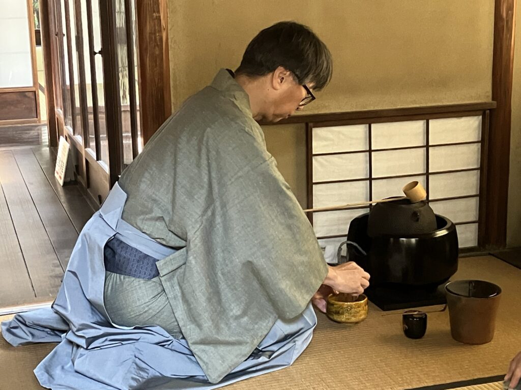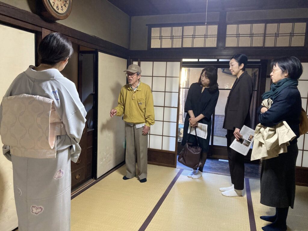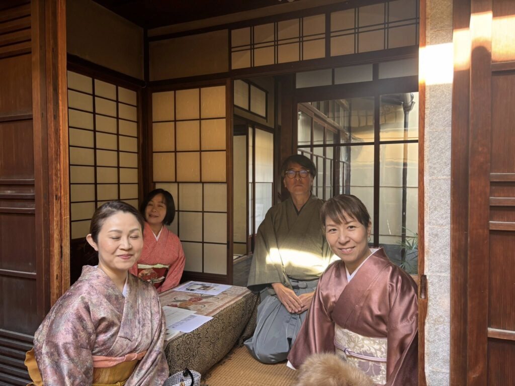 お菓子は、クラウドファンディングの一つでもある、鼓月特製の藤野家住宅家紋入りのオリジナル千寿せんべいで、変わった趣向にお喜びいただけたようでした。