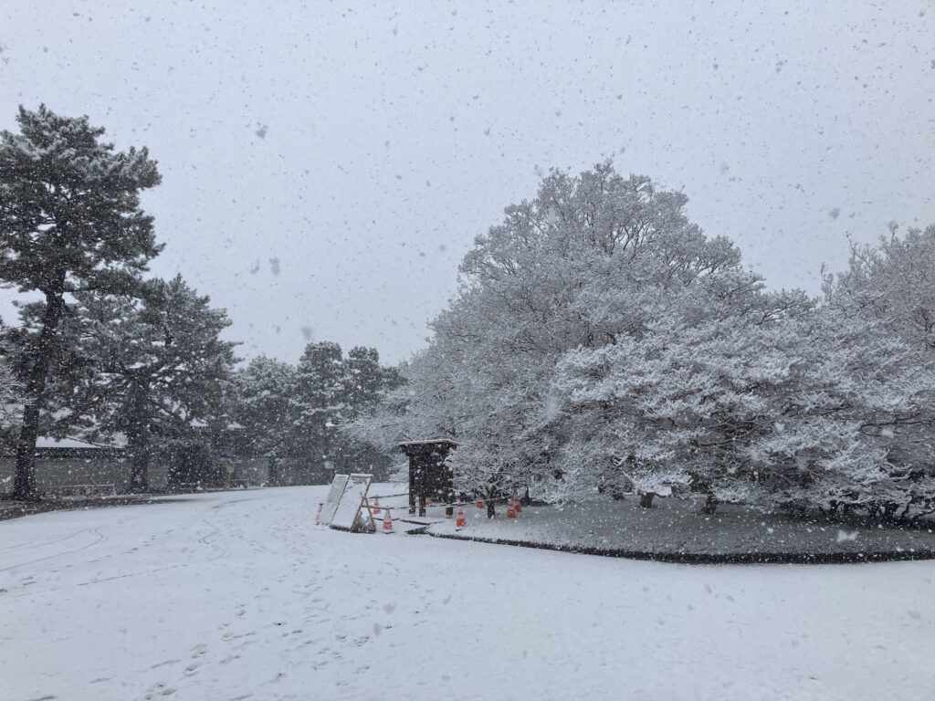 ご近所の京都御所もご覧のように一面の銀世界、まるで水墨画の世界です。